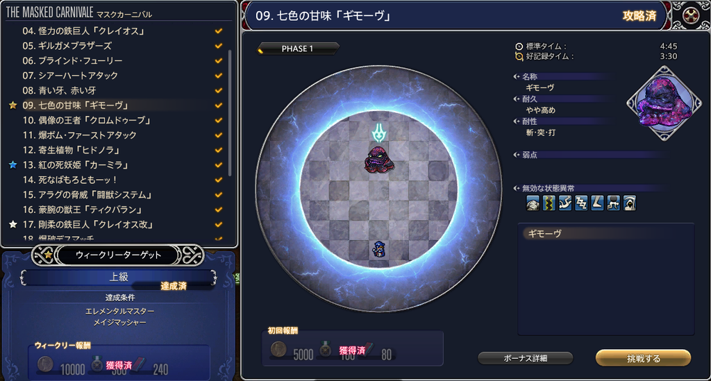 今週はエレメンタルマスターとメイジマッシャーの縛りでした。どの詠唱を止められるかさえ判断できれば初見でもクリア余裕でしたね。