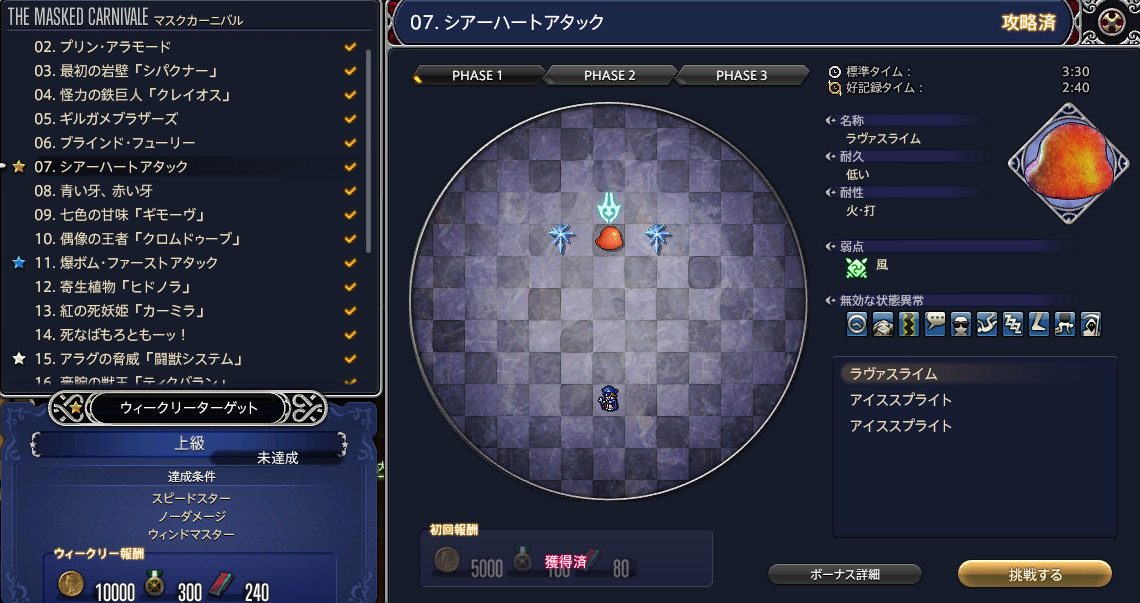 今回のマスクカーニバルは歴代最難関だったんじゃないでしょうか。様々な青魔法を覚えていることが要求されますし、時間制限も厳しかったです。