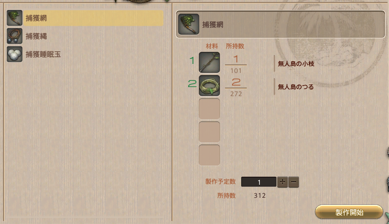 縦の川エリアのつるを集めることで、粘土周回や改築素材集め中に余った小枝を捕獲網にする方法です。