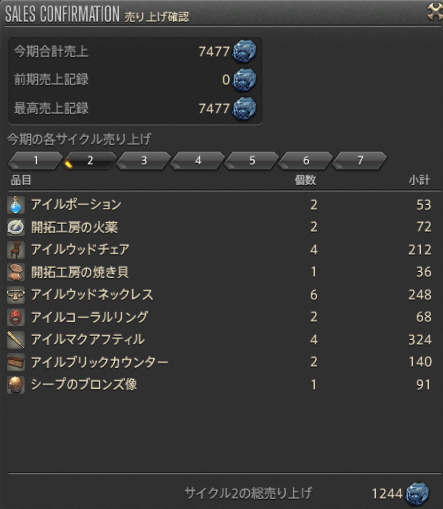 1日の入手量が限られている畜産素材や栽培素材、特に探索レア素材を使った島産品は基本取引額が高めです。