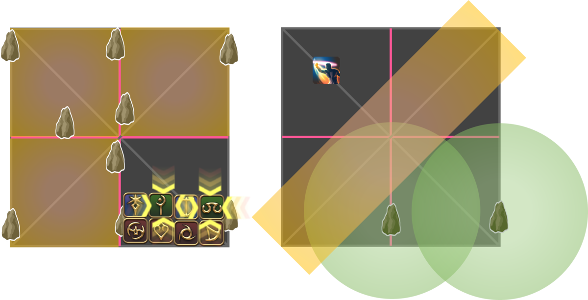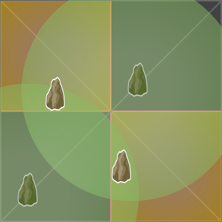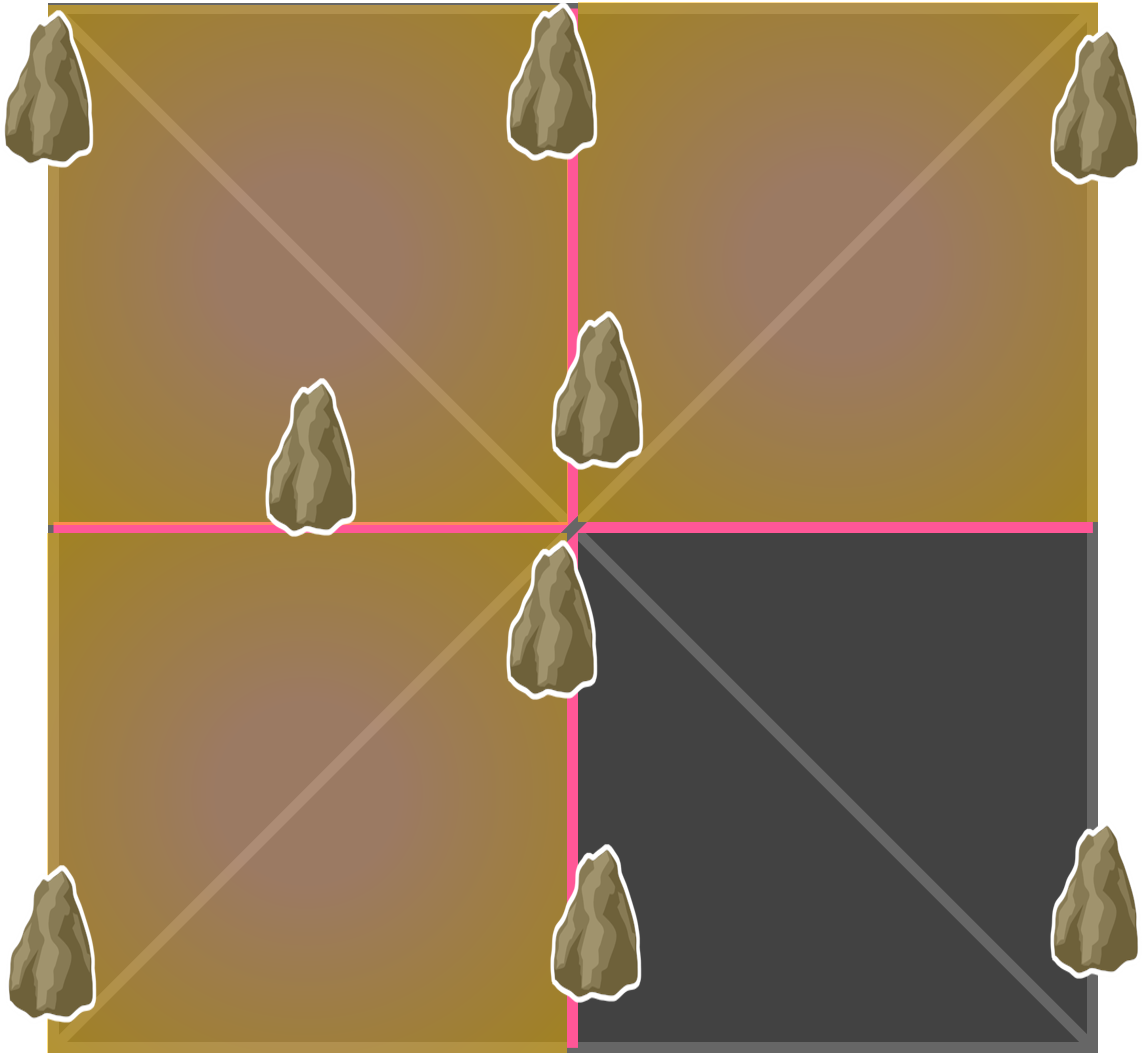 岩が外壁と内壁(×中央)の2か所にあるマスで44頭割りを処理します。